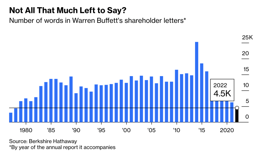“这封信最突出的地方在于它的简洁——只有4455个字,这是巴菲特44年来最短的股东信。”彭博的一篇专栏文章里这样写道。