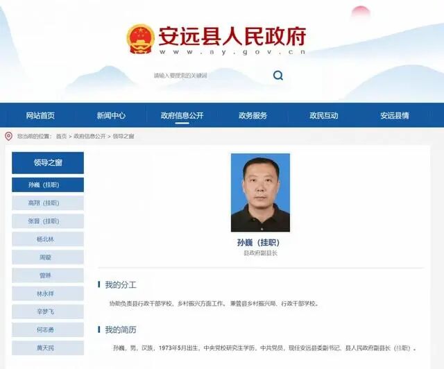 近日,江西省赣州市安远县县长李某平涉嫌侵犯一位在当地挂职锻炼的女干部被停职一事,引发广泛关注。昨日(2月27日),查询江西安远县政府官网发现,李某平的个人简历信息已从“领导之窗”栏目撤下。目前,该县政府网站暂无“县长”信息。