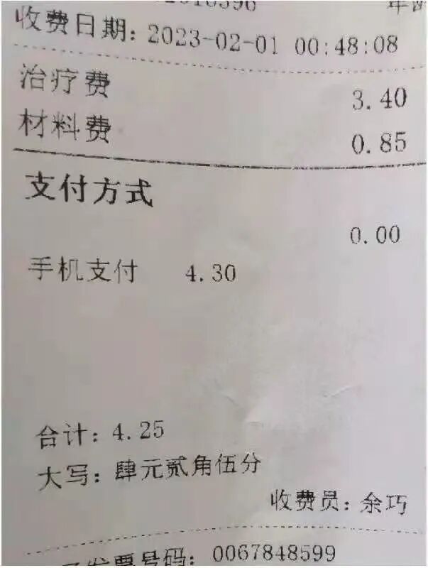 但在输液时,李女士翻看收费单意外发现自己被多收了5分钱,“发票上显示合计4.25元,但我手机支付的是4.30元,当时因为身体不舒服我也没有询问工作人员。”