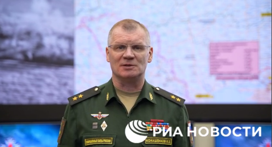 科纳申科夫3月1日通报俄对乌特别军事行动情况的画面,图源:俄新社视频截图