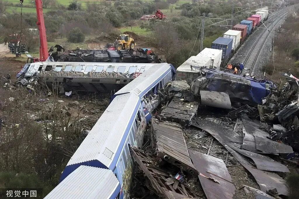 当地时间2023年2月28日晚,希腊中部地区主要城市拉里萨附近2列火车迎头相撞,事故已造成至少36人死亡。视觉中国 图