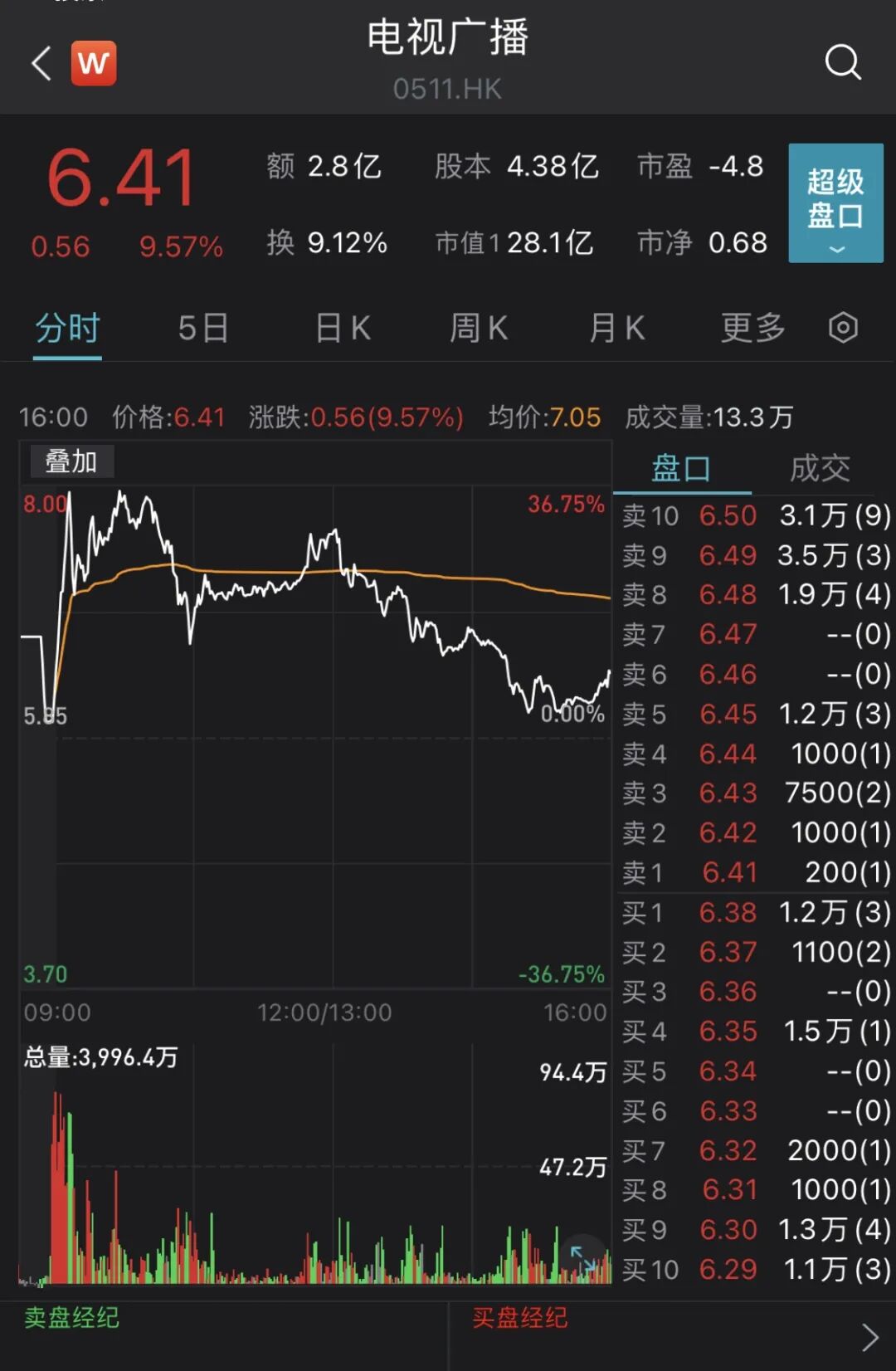 受上述消息影响,TVB上周五股价大涨超过51%。3月6日,TVB一度盘中涨超36%,触及近一年股价高点。截至收盘,该股上涨9.57%,报收6.41港元。两个交易日内累计涨幅达66.06%,刷新短期累计涨幅纪录。