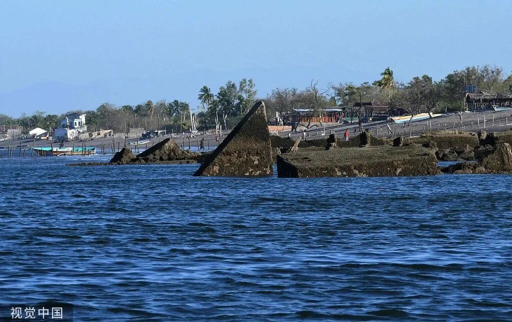 当地时间2023年2月20日,洪都拉斯,被海平面上升摧毁的建筑。视觉中国 图