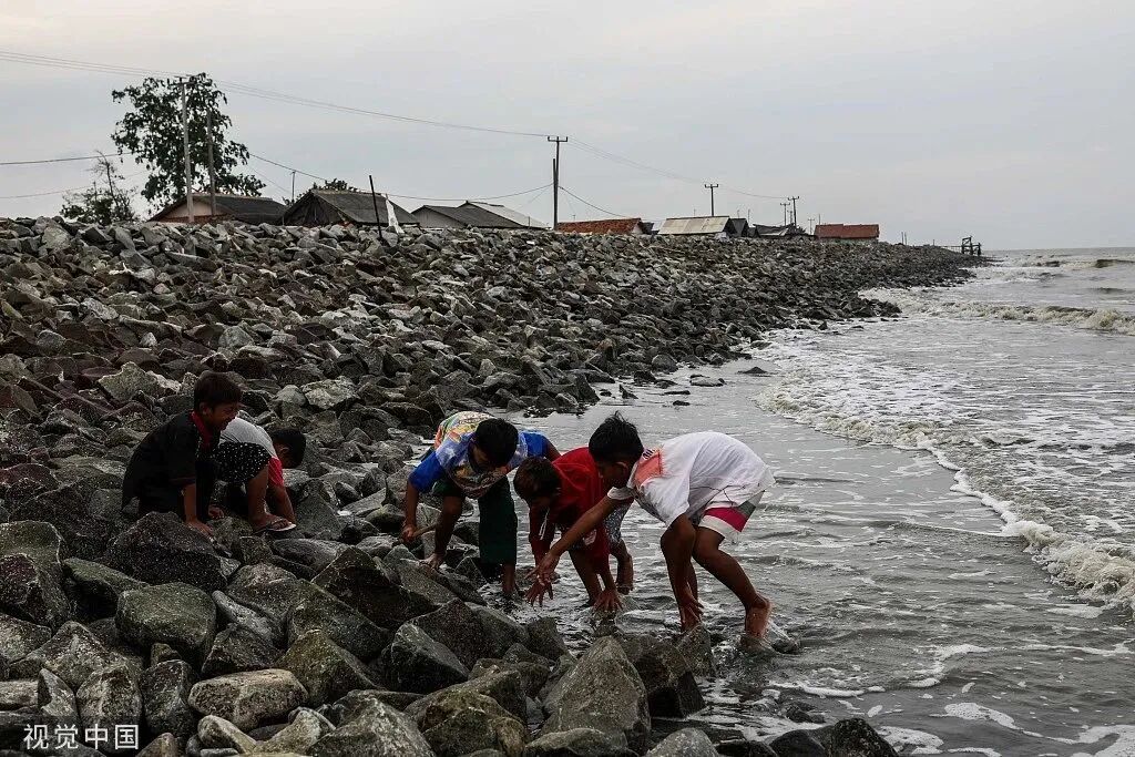 当地时间2023年1月3日,印度尼西亚,海平面上升和潮汐洪水的影响导致当地300所房屋失踪。视觉中国 图
