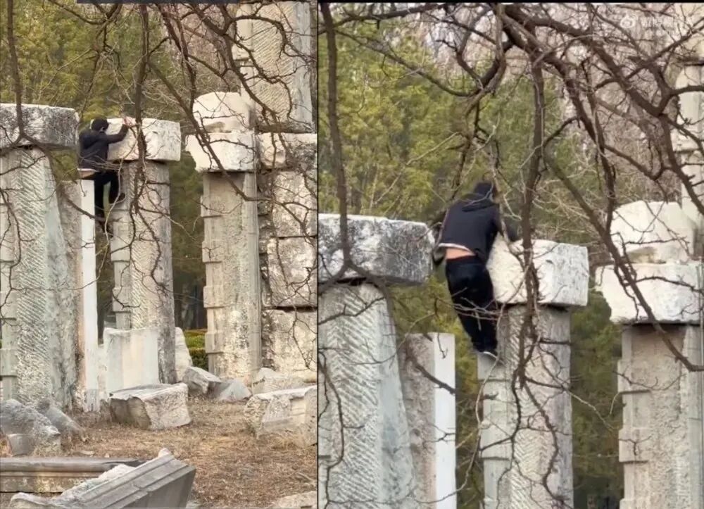 3月9日,一组游客在圆明园遗址攀爬的视频引发广泛关注,网友纷纷愤怒指责这种不文明游园行为。