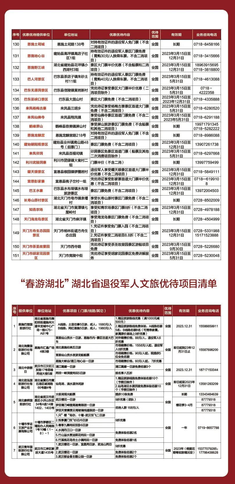 湖北省退役军人事务厅联合省文旅厅、湖北文旅集团面向全国、全省退役军人发布文旅优待项目,推介湖北春季九大主题旅游线路,并同步在湖北文旅“游湖北”平台“退役军人优待专区”上线,让广大退役军人实现一部手机游湖北。