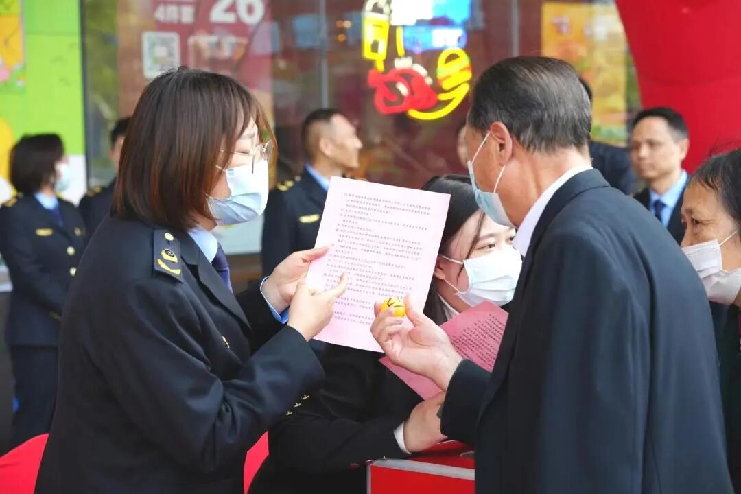 荆州区人大副主任张宗冰,副区长关勇,市、区有关单位负责人参加此次活动,并为2022年度市级“放心消费创建”示范单位、市级“守合同 重信用”单位、省级“投诉和解优秀单位”颁发奖牌和证书。