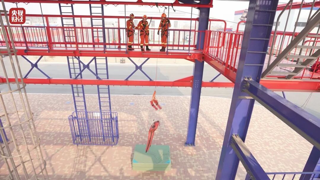 3·15晚会联合国家消防救援局,进行了安全测试。在离地7米高的实验台,模拟高空游乐项目,消防员为身高1.7米,重量60公斤的道具假人穿戴好三点式安全带。