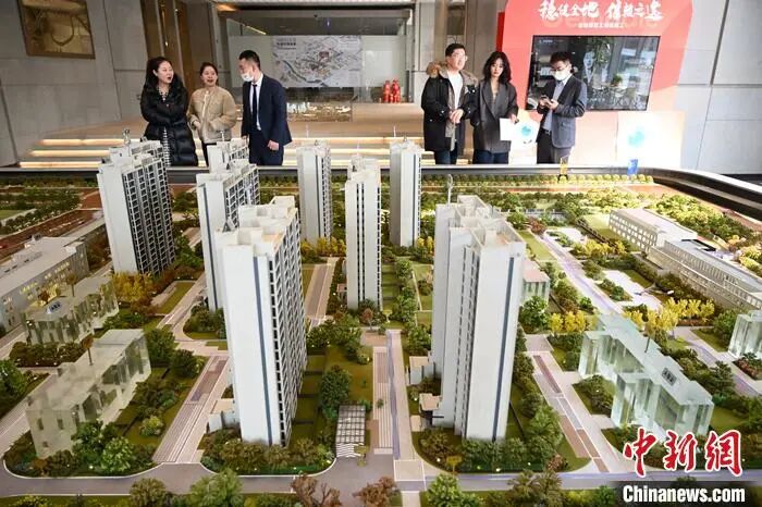 2月16日,内蒙古呼和浩特市,购房者在售楼部关注楼盘信息。 中新社记者 刘文华 摄