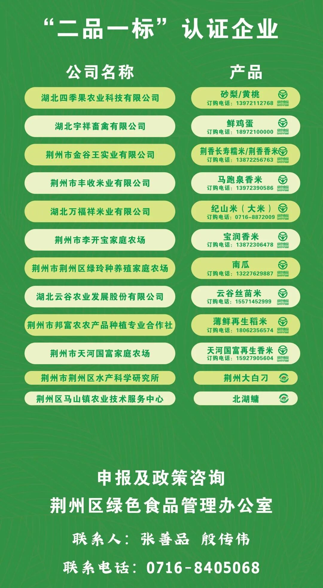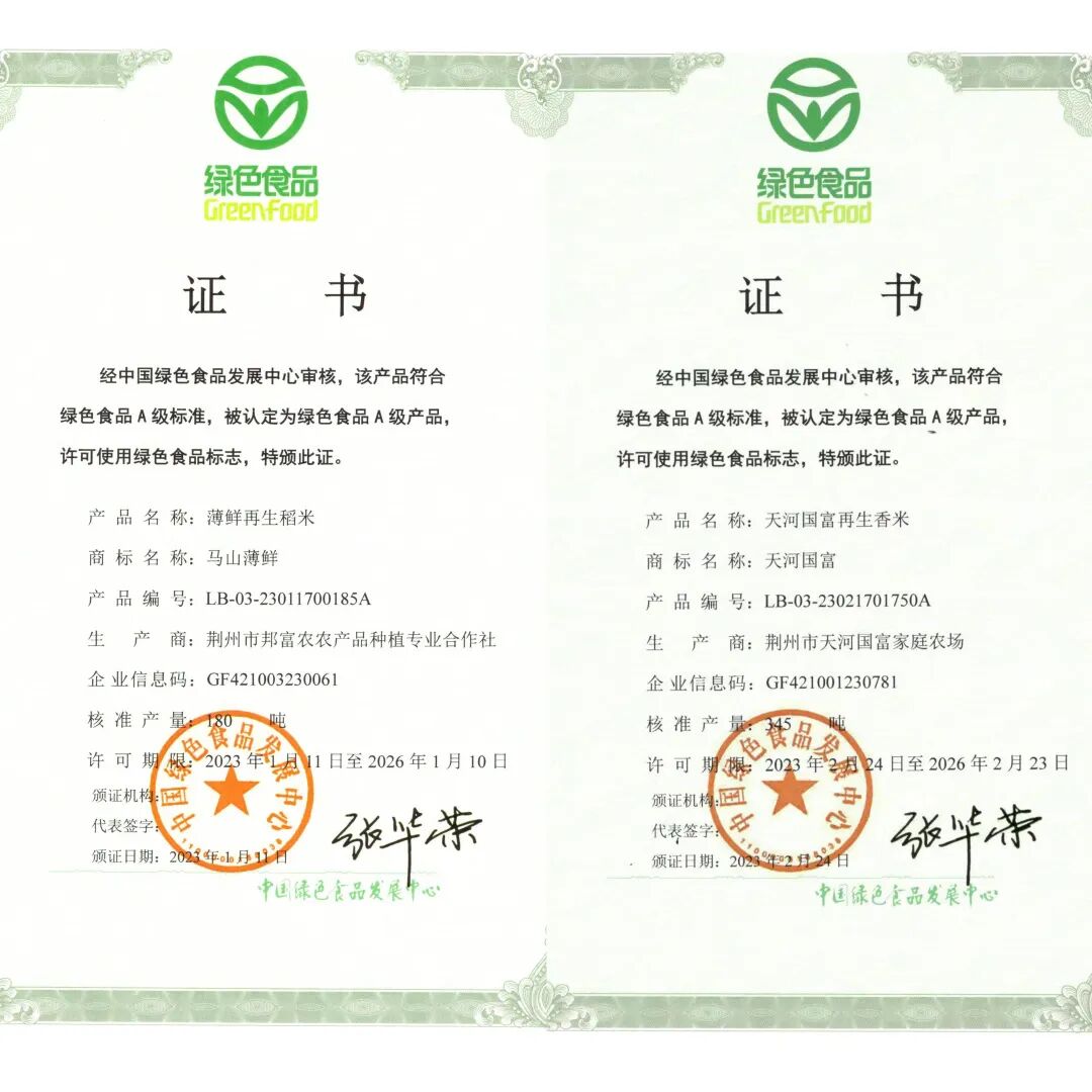 近日,从农业农村部绿色食品发展中心传来好消息,荆州区天河国富家庭农场的天河国富再生香米和邦富农农产品种植专业合作社的薄鲜再生稻米2个产品获得绿色食品标志认证。截至目前,荆州区共有绿色食品12个,涵盖稻米、蔬菜、瓜果等多个产业。