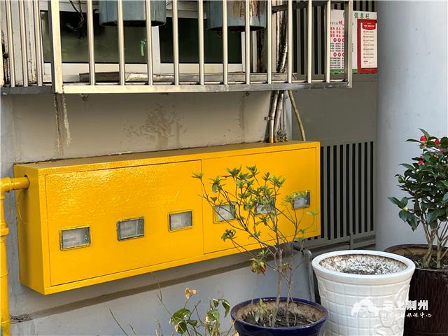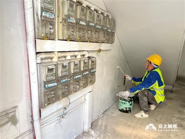 在沙市区桥北花园,施工队伍热火朝天地对楼栋外的气表盒进行除锈、翻新。