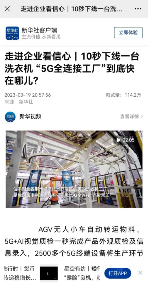 位于湖北省荆州经济技术开发区的美的洗衣机工厂,是我国家电制造领域率先实现“5G全连接”的智慧工厂,基于5G专网的高可靠、广连接和低时延特性,整个产品生产线实现了真正意义上的5G全流程管理,大大提升了生产效率。