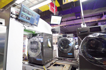 进度条,百分之16AGV无人小车自动转运物料,5G+AI视觉质检一秒完成产品外观质检及信息录入,2500多个5G终端设备将生产环节“无缝衔接”,千余台自动化机器设备高效运转……5G赋能下,这家工厂平均10秒就有一台洗衣机下线。