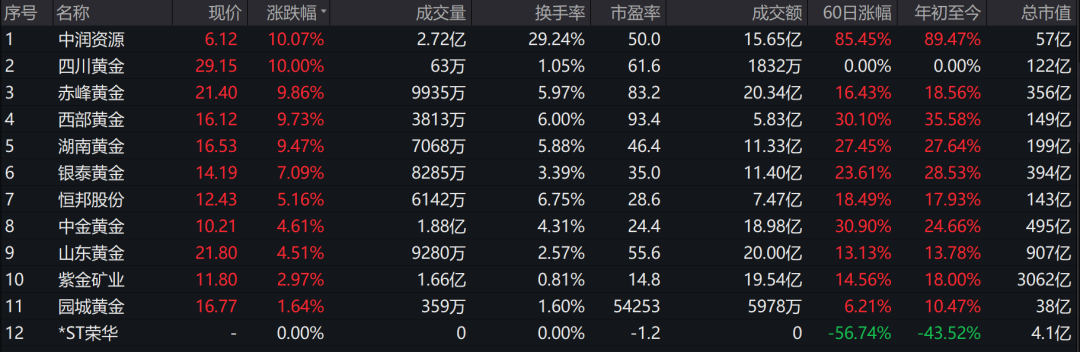 二级市场方面,Wind数据显示,万得黄金行业指数含12只成分股,除*ST荣华停牌外,其余11只个股3月20日均上涨。