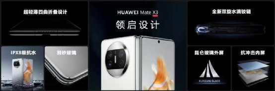 在备受关注的折叠屏方面,华为旗舰机型Mate X3也正式发布。众所周知,此前折叠屏的重量和防水性频遭诟病,但华为Mate X3的“黑科技”解决了这些痛点。