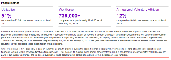 在2023财年第二季度,埃森哲启动了简化运营、转变非计费公司职能和整合办公空间以降低成本的行动。