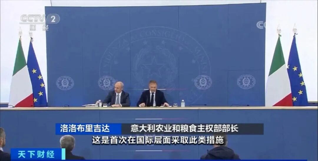 意大利农业和粮食主权部部长 洛洛布里吉达:这是首次在国际层面采取此类措施,意大利是第一个对所谓的合成食品和合成肉,说“不”的国家,而且是通过正式立法,我们认为这是一个重要的结果。