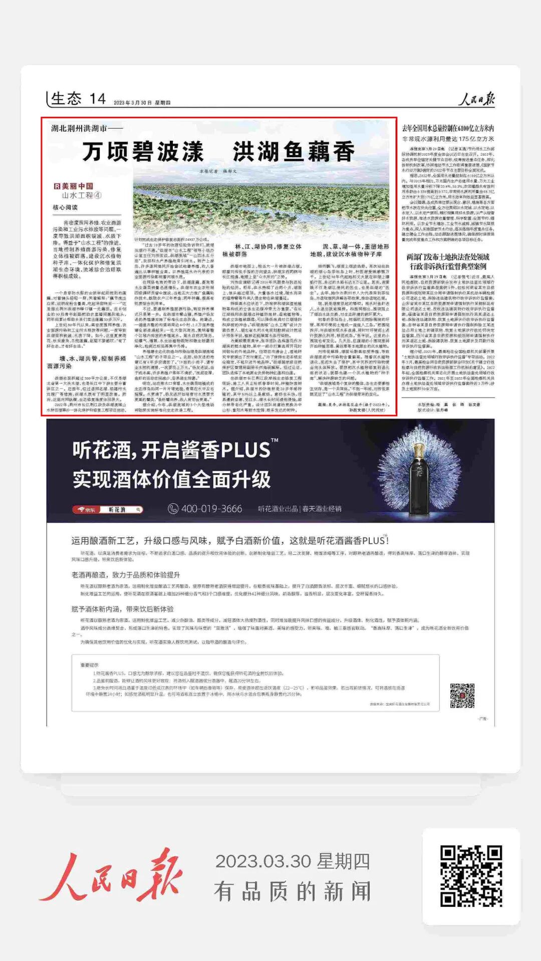 上世纪80年代以来,高密度围网养殖、农业面源污染和工业污水排放等问题,一度导致洪湖面积锐减、水质下降。如今,这里夏赏荷花、秋采菱角、冬挖莲藕,赵聪不禁感叹:“有了好生态,才有好生活。”