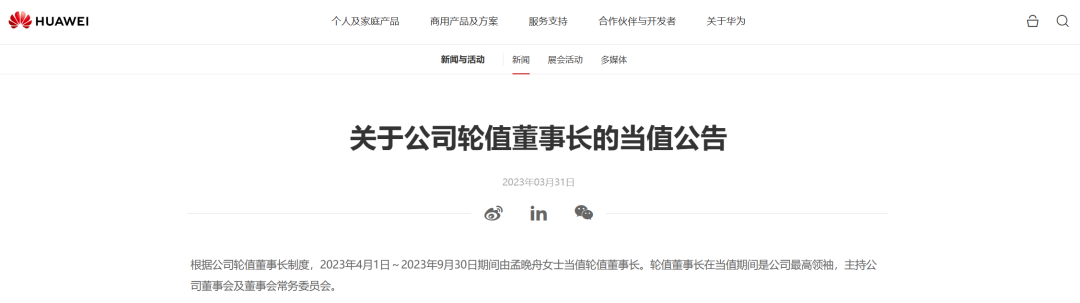 根据公司轮值董事长制度,2023年4月1日~2023年9月30日期间由孟晚舟女士当值轮值董事长。轮值董事长在当值期间主持公司董事会及董事会常务委员会。长江日报,赞93当日,华为发布2022年年度报告。孟晚舟在发布会上表示:“2022年,经营依然面临较大压力。总体而言,经营业绩符合预期。2022年末,华为的资产负债率为58.9%,净现金余额1763亿元人民币。近万亿的总资产规模中,现金、短期投资、运营资产等高流动性资产构成了资产的主体部分,财务状况持续稳健,具有较强的韧性与弹性。2022年,研发费用总额为1615亿元人民币,研发费用率25.1%,处于历史高位。面向未来,我们有压力,更有信心!”