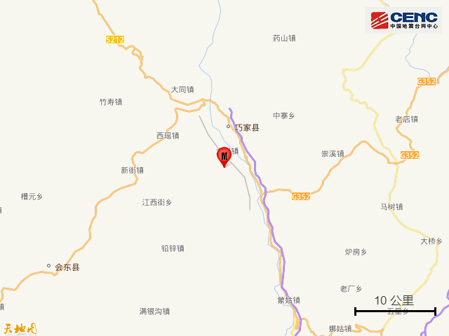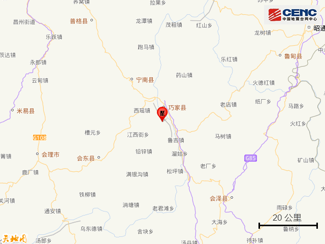 震中距云南巧家县8公里、距宁南县31公里、距会东县40公里、距云南会泽县59公里、距会理市70公里,距云南昭通市97公里,距昆明市200公里。
