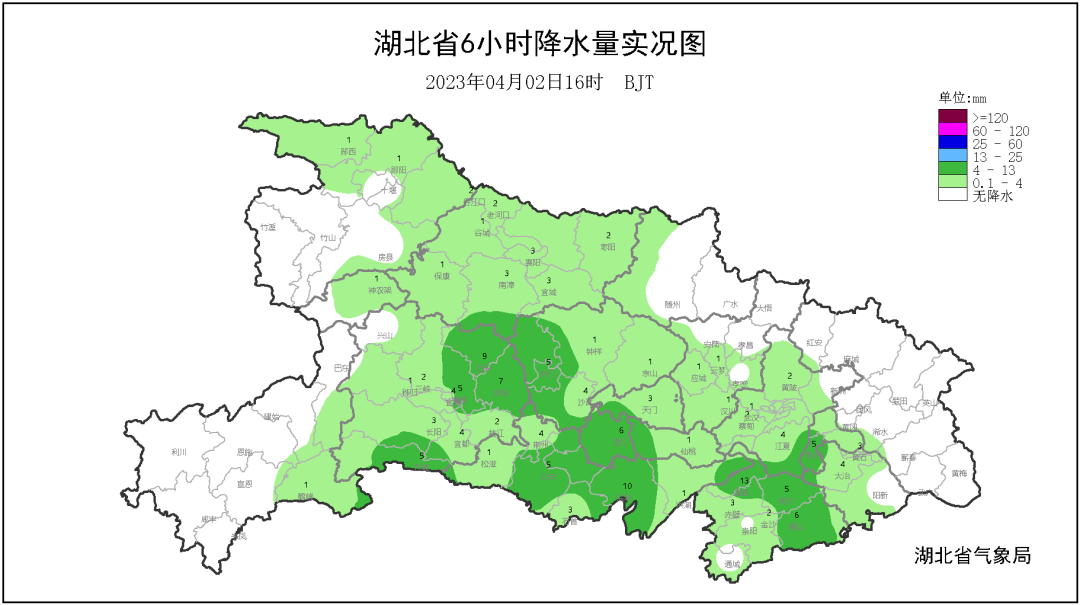 鄂西南、江汉平原南部、鄂东南阴天有小雨;其他地区阴天。