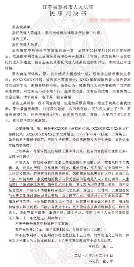 记者了解到,写这份判决书的人叫王云,是泰兴法院的一名80后审判员。