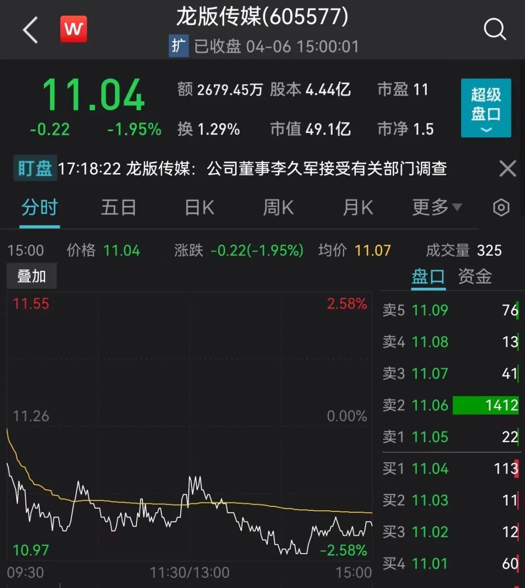 龙版传媒6日盘中一路走低,最后收报11.04元,总市值不足50亿元。