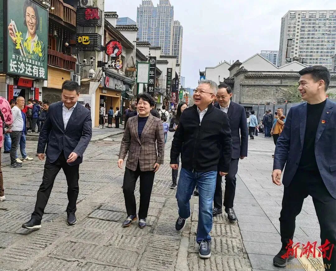 4月2日,湖南省委书记沈晓明来到太平老街,察看城市风貌并了解文旅产业发展情况。图片来源:湖南日报