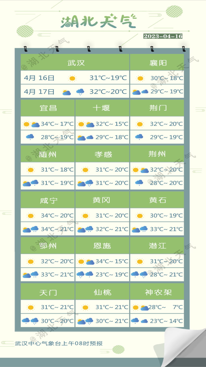 武汉中心气象台4月16日11时预报