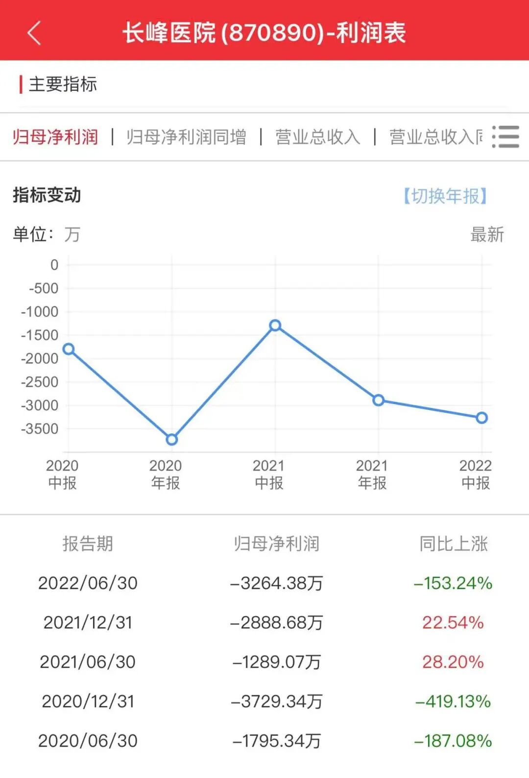 长峰医院2022年半年度报告显示,2022年上半年,北京长峰医院实现营业收入约为2.53亿元,对应实现归属净利润约为-3264.38万元。