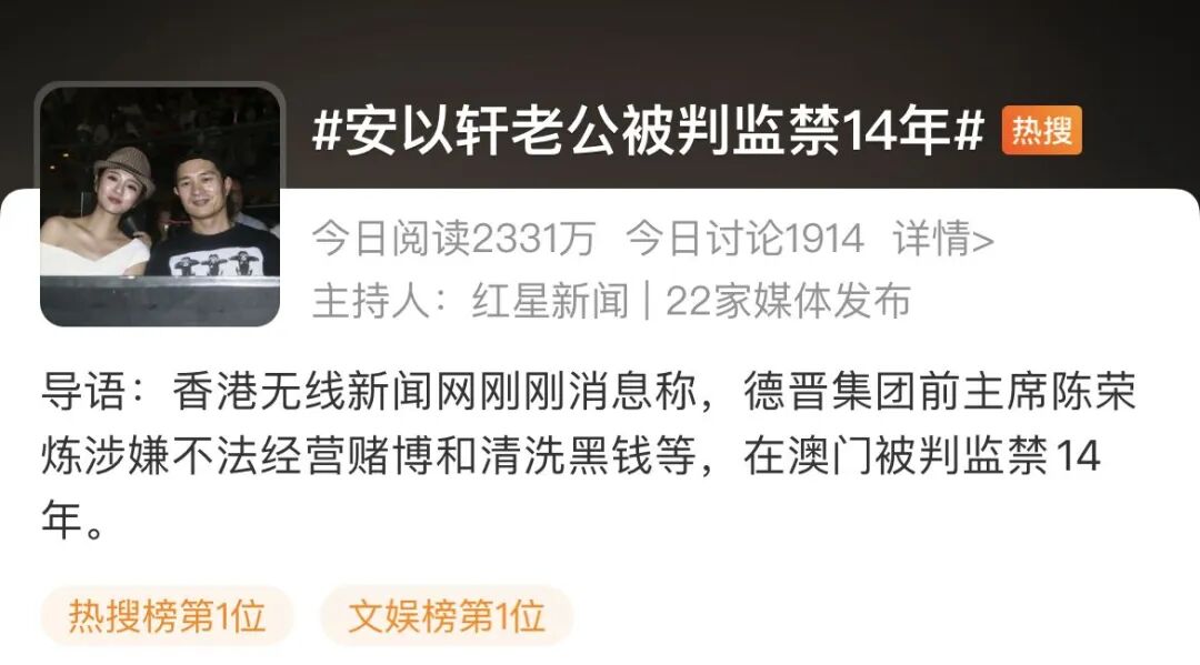 4月21日,#安以轩老公被判监禁14年# 冲上热搜第一。