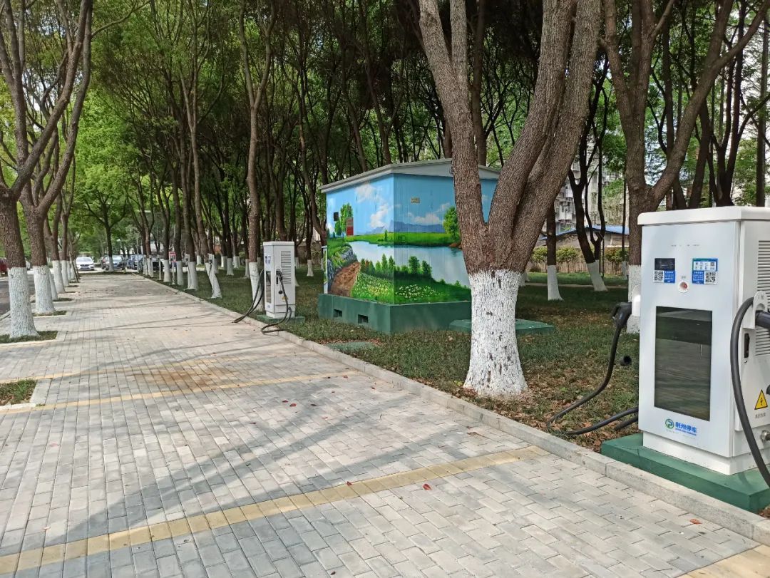 福利院停车场位于塔桥路以东长港路以北,配置双枪快充桩。