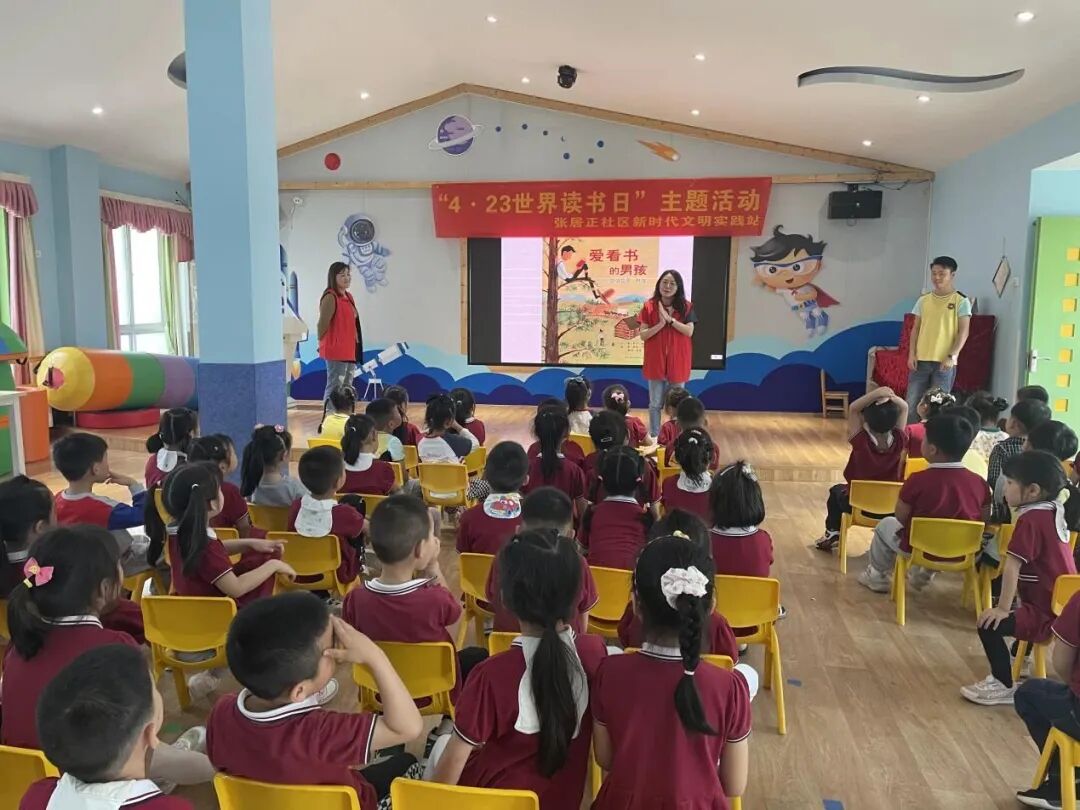 4月21日,立新街道张居正社区联合盟立新城幼儿园开展“4·23世界读书日”主题活动。活动中,社区志愿者通过“大手牵小手”的形式,和孩子们分享一本好书,与他们一起阅读,引导他们养成爱读书、勤读书、乐读书的良好习惯。