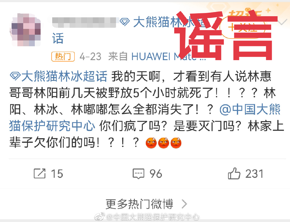 4月28日晚,@中国大熊猫保护研究中心 发文辟谣。
