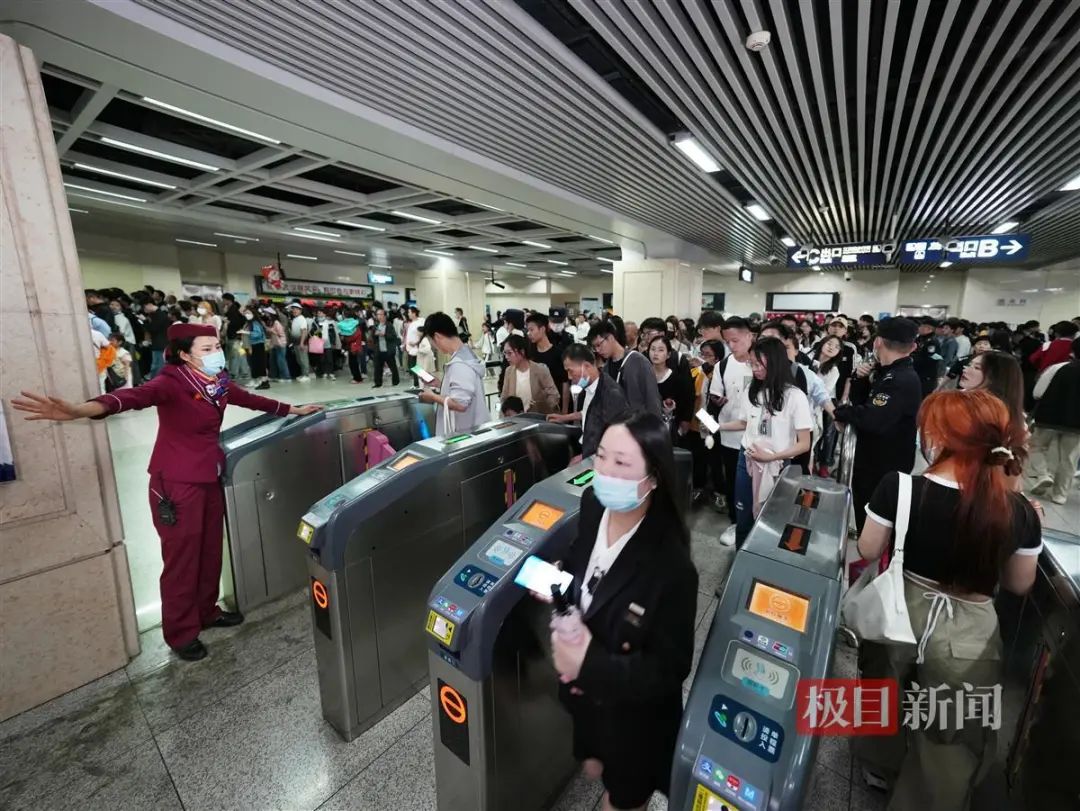 面对居高不下的客流,当晚8时50分许,站方及时启动大客流应急预案,将进站闸机设置为免检票模式,乘客无需扫码或刷卡可直接快速进站。到达目的地出站时,系统将默认从该站进站予以计费。记者看到,这一举措大大提高了进站效率,客流平稳有序消落。约2小时后,该站恢复正常进站模式。