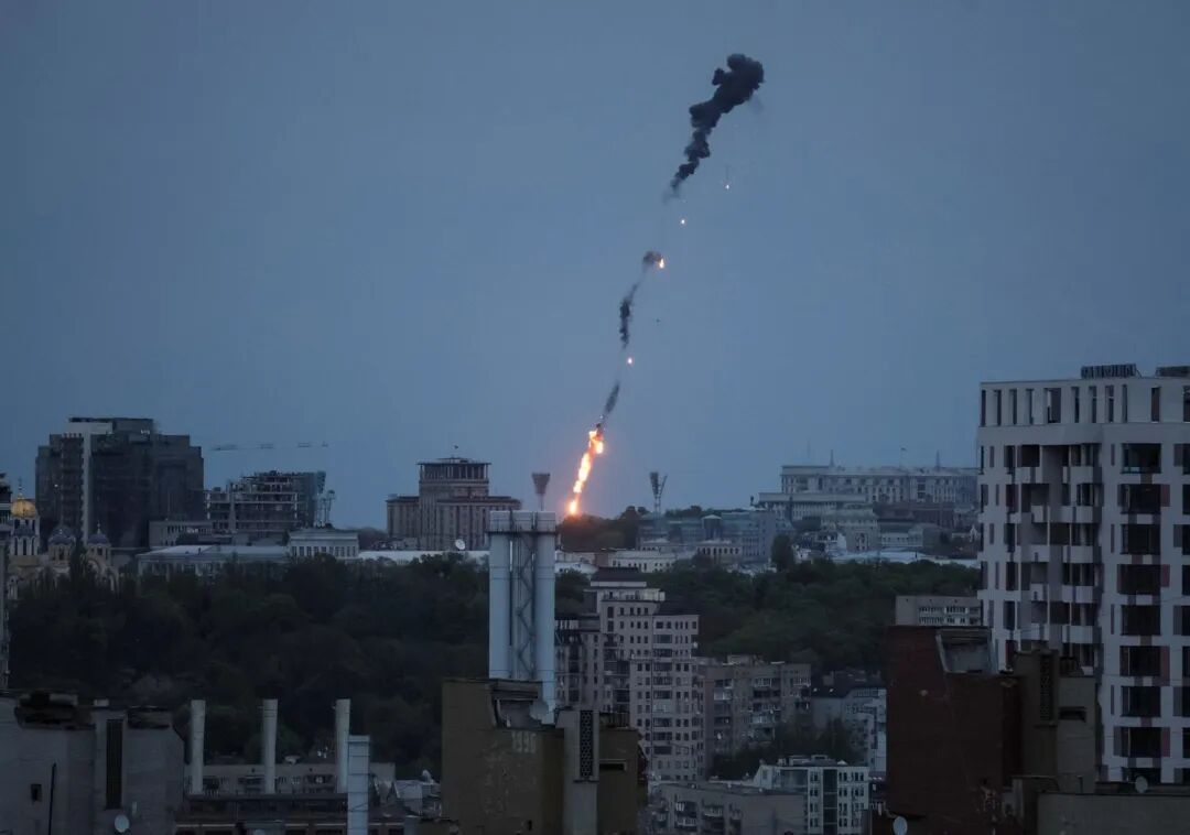 当地时间2023年5月4日,乌克兰基辅,一架失控的无人机被击落。 视觉中国 图