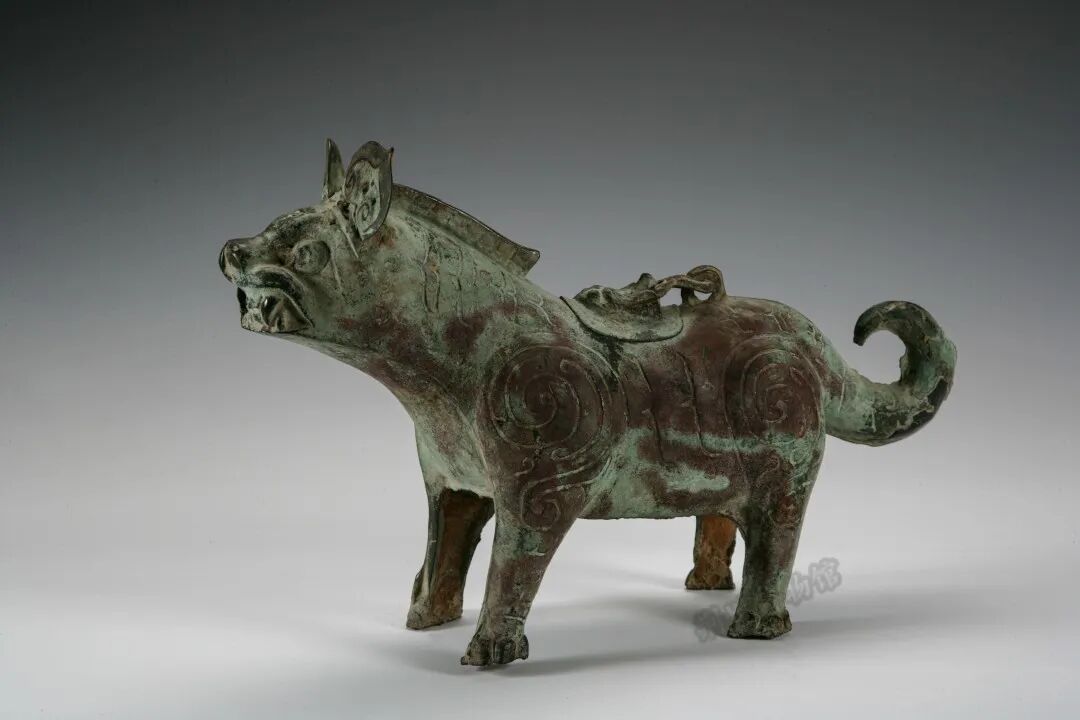 内涵:礼器。昂首立虎形,竖耳,瞪眼,呲牙,卷尾,四足粗壮,身饰卷云纹,背有链盖。威风凛凛,形象生动,工艺精湛。