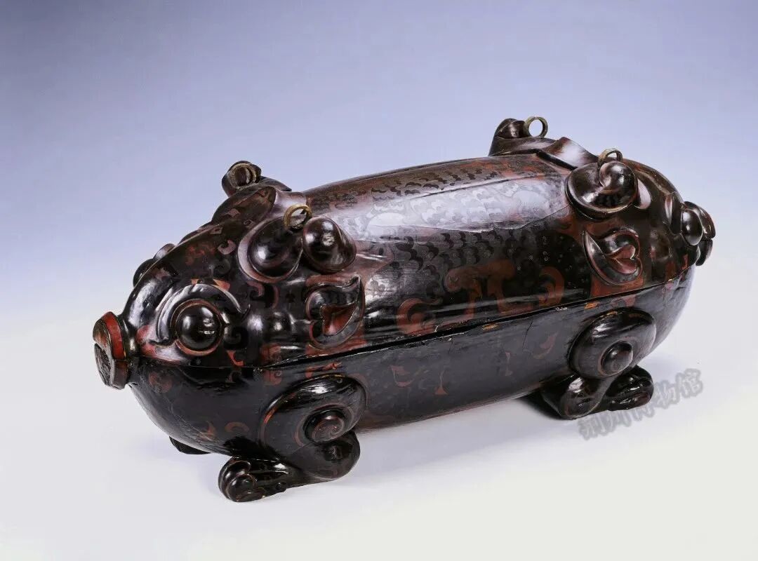 内涵:内盛耳杯,由盖、身组成,两端各浮雕猪首、足,造型独特,憨态可掬。《山海经》称“并封”。