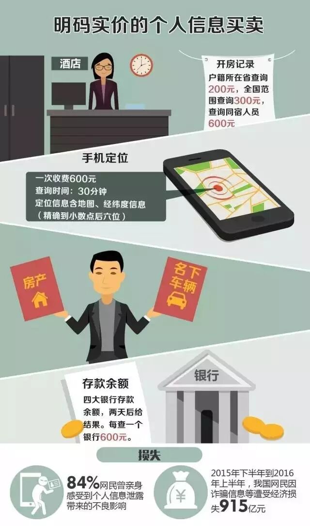 只要一个身份证号,从名下有几套房几辆车、多少资产,到何年何月何日某分某秒和某一个人在哪里开了房,都会被完全暴露;仅需半小时,通过手机定位就可以获得你的实时位置,经纬度精确到小数点后六位的那种。只要留下痕迹,你的信息就会完全“裸奔”。