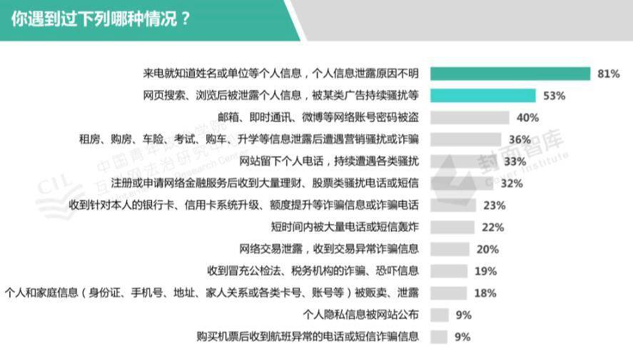 △数据来源:《中国个人信息安全和隐私保护报告》由中国青年政治学院互联网法治研究中心和封面智库联合发布