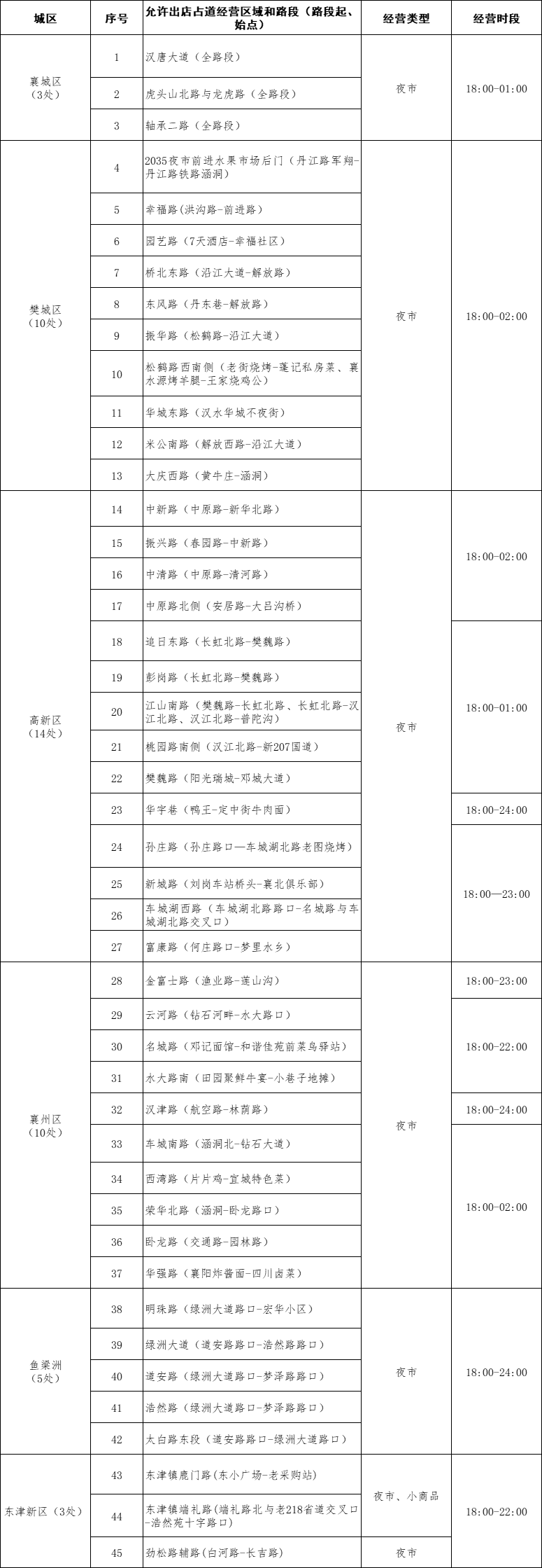 今年继续在夜间开放公共区域、路段45处允许商家临时占道经营
