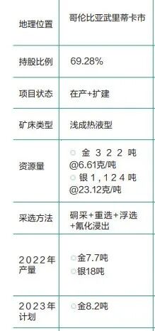 而该金矿值得称道的其世界级的高品位,紫金矿业2022年年报显示,武里蒂卡金矿金资源量达322吨。该金矿2022年金产量为7.7吨,计划在2023年产金8.2吨。