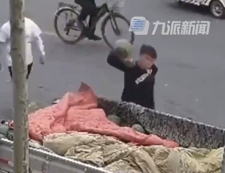 此外,一名身穿黑色衣服的男子和一名身穿白色衣服的男子将西瓜从车内抱出,并将其摔在地上。