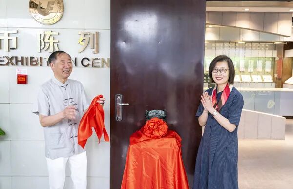 湖北经济学院校长方洁、收藏家陈进建共同为金融票据展区揭幕。
