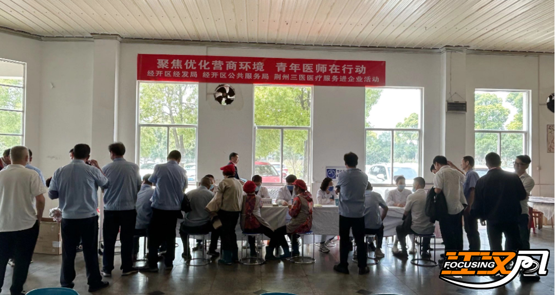 5月24日,由经开区经发局、经开区公共服务局和荆州市第三人民医院共同主办的医疗服务进企业活动月第二场活动,走进沙市久隆汽车动力转向器有限公司。现场,工作人员为企业职工赠送医疗急救包,医护人员为职工测量血压,耐心询问职工身体状况,解答职工健康问题,并提出治疗建议,为大家调理改善症状。