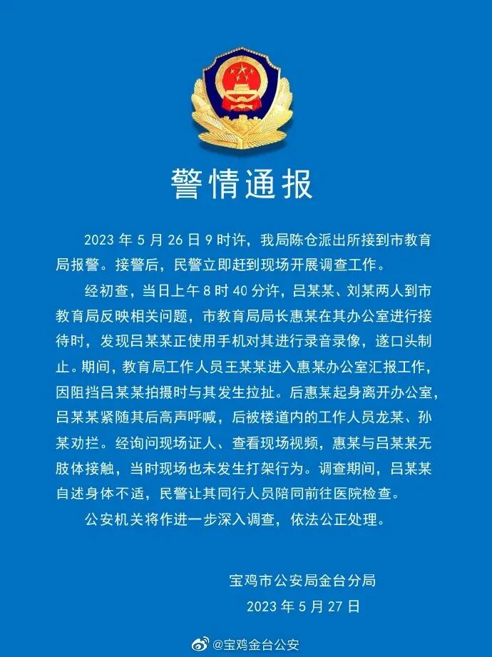 5月27日23时许,@宝鸡金台公安 发布警情通报: