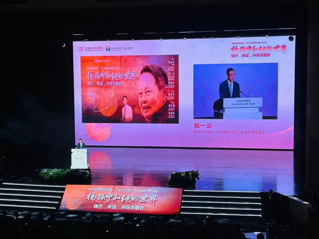 5月27日,一场聚焦当代物理学大师杨振宁先生的讲座在西湖大学举行,以《杨振宁和他的世界——锋芒、幸运、冲突与融合》为题,徐徐展开他人生的不同面。