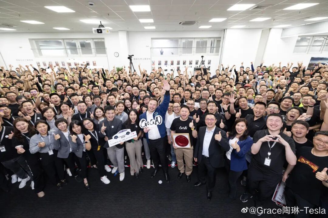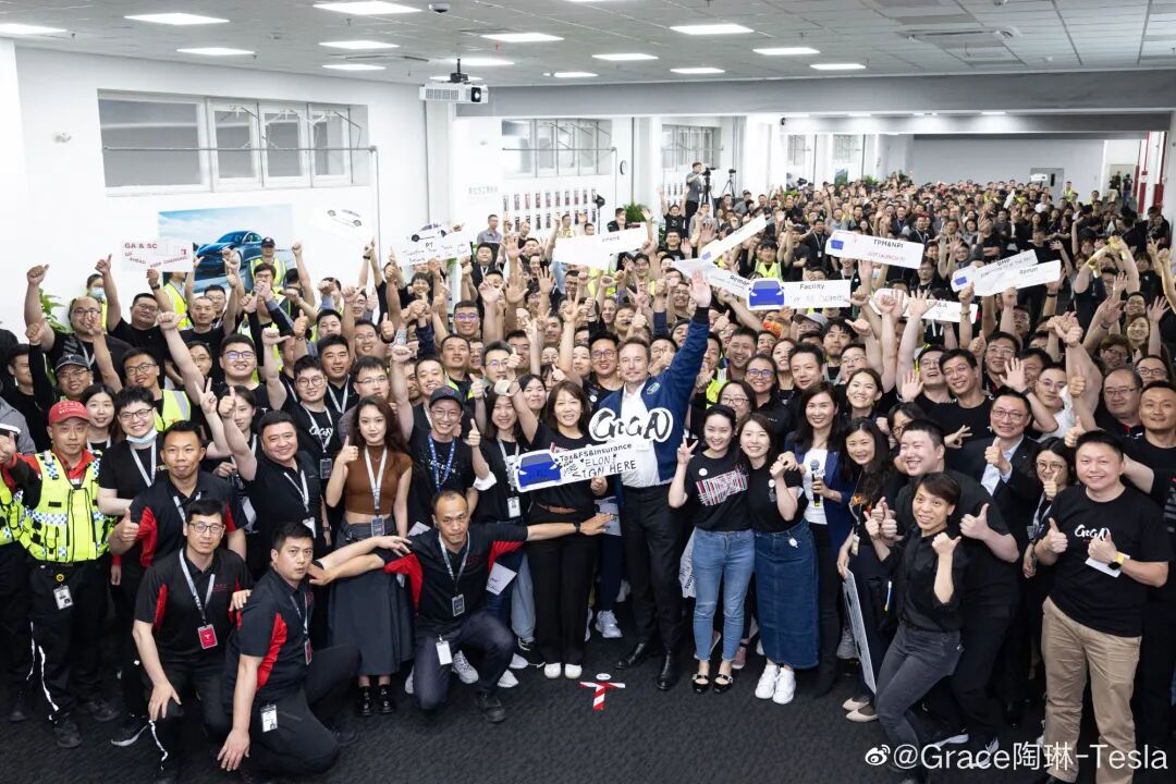 北京时间5月31日21时26分,特斯拉CEO马斯克的私人飞机落地上海虹桥机场,3小时后的6月1日凌晨0时28分,特斯拉全球副总裁陶琳微博发布两张马斯克和员工的大合影,配文“感谢所有的支持!收获满满的一天!”,地点是特斯拉上海超级工厂。
