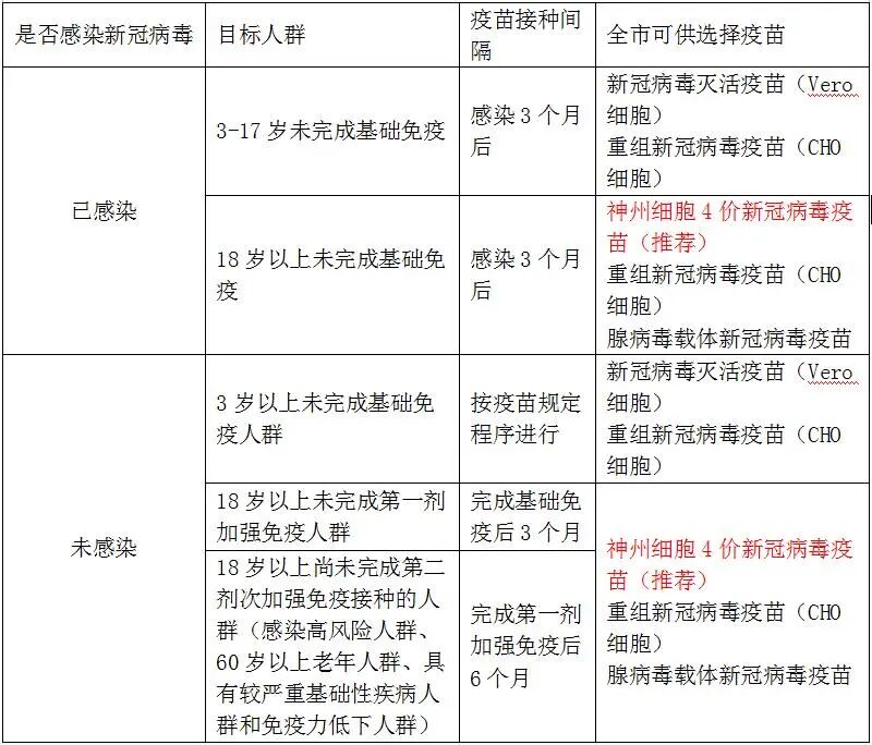 备注:已感染且已完成基础免疫人群暂不需要再接种。