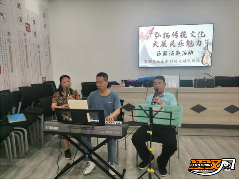 6月7日,联合街道翠湖苑社区新时代文明实践站开展“弘扬传统文化 大展民乐魅力”乐器演奏交流活动。现场,社区音乐爱好者演奏笛子、电子琴、葫芦丝等乐器,丰富多变的音色和风格多样的曲风,为居民们献上一场社区“音乐盛宴”。